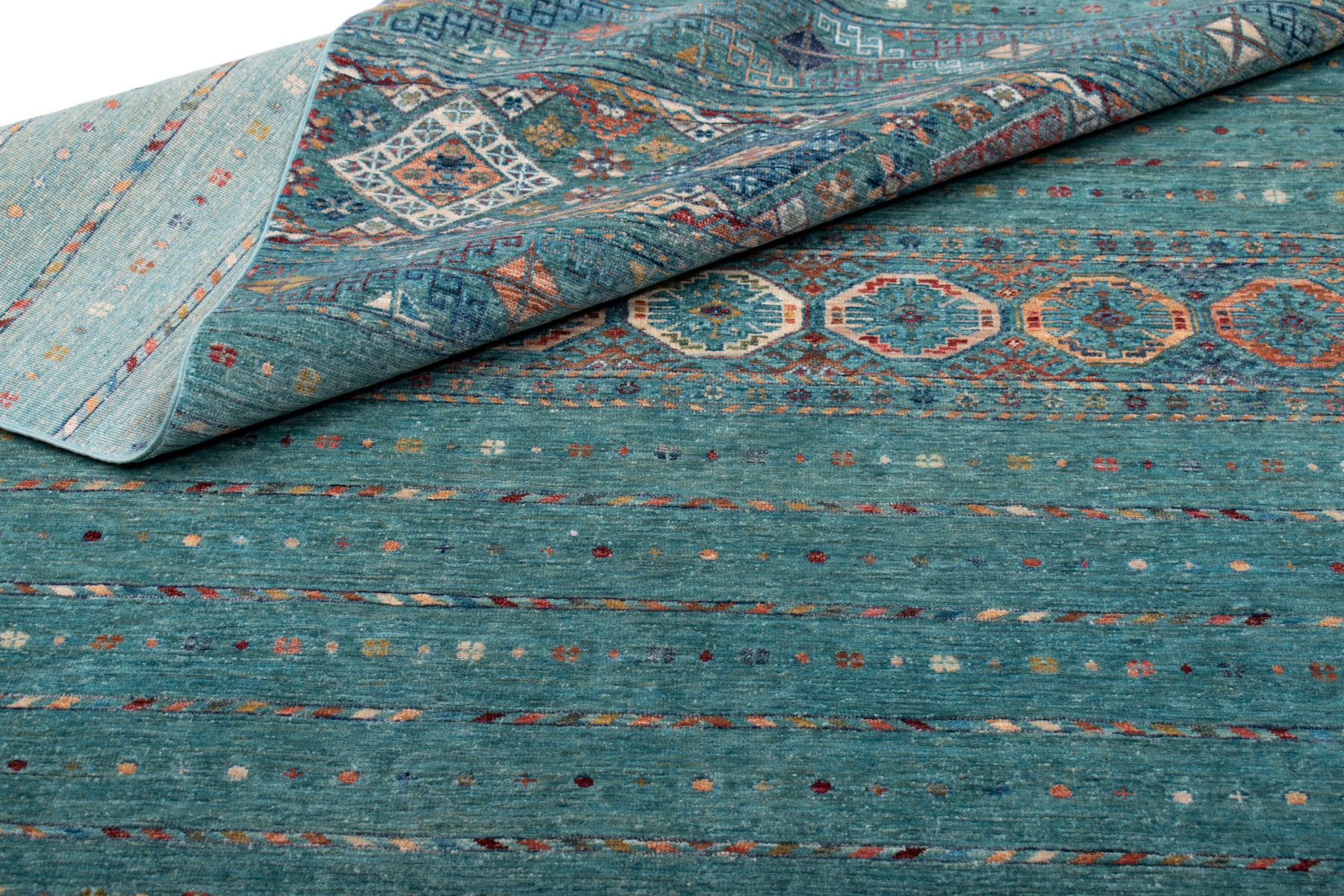 Ogni singolo tappeto è annodato o tessuto a mano al 100% ed è realizzato da nomadi e maestri tessitori secondo antichi schemi e tradizioni.
