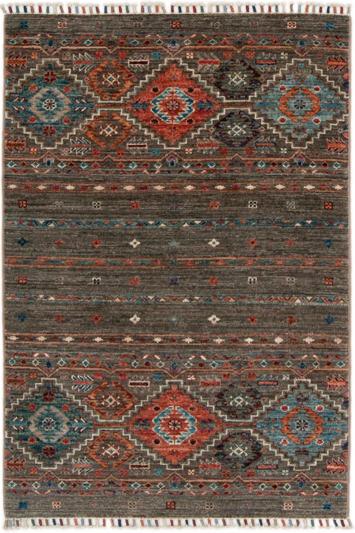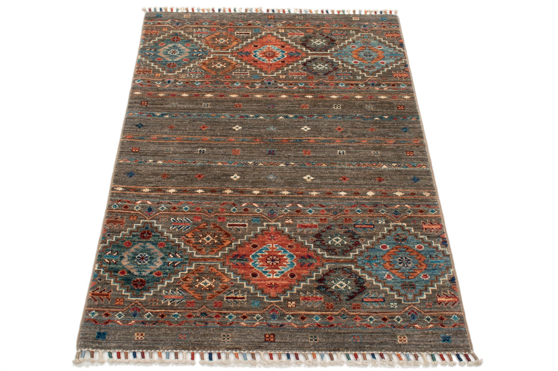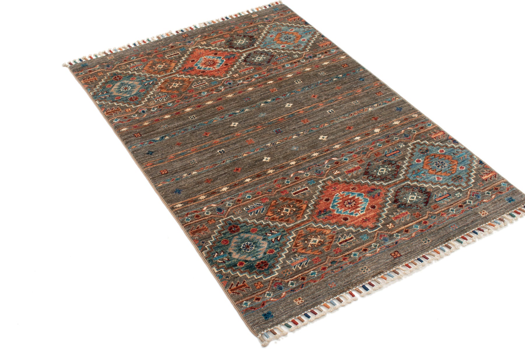 Ogni singolo tappeto è annodato o tessuto a mano al 100% ed è realizzato da nomadi e maestri tessitori secondo antichi schemi e tradizioni.