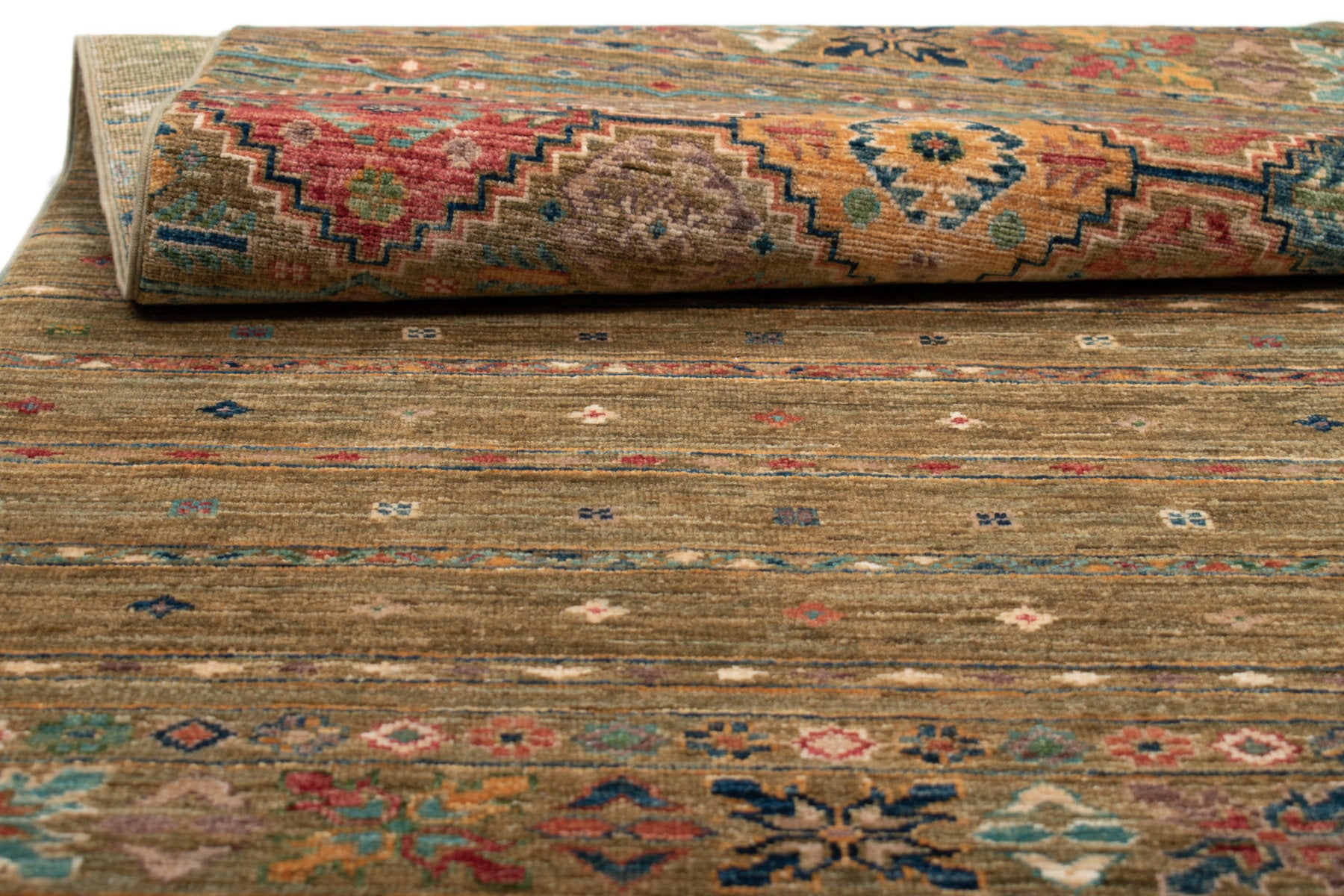 Heute stehen Samarkand-Teppiche für außergewöhnliche Qualität und moderne, orientalisch angehauchte Muster. Die Teppiche beziehen ihre Inspiration aus dem klassischen Perserteppich-Design. Die verwendete Wolle ist von hoher Qualität und die aus natürlichen Pflanzenfarben bestehende Farbpalette ist weicher und subtiler als die von Perserteppichen. Der kürzere Flor macht es einfach, den Teppich sauber zu halten.